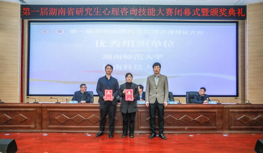 11月15日,由湖南省教育厅主办、我校承办、湖南省社会科学普及项目支持的第一届湖南省研究生心理咨询技能大赛在济世楼学术报告厅圆满落幕。湖南省教育厅学位管理与研究生教育处二级调研员刘梦清,我校党委委员陈鸿君出席颁奖典礼。