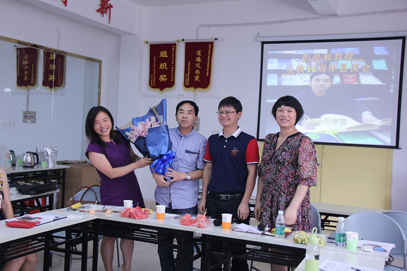 7月6日上午,人文社科学院在学院学生活动室召开彭爱和教授从教36周年恳谈会。参加此次座谈会的有院长毛新志、党总支书记章小纯、副院长陈小平以及全院教师。会议由毛新志主持。