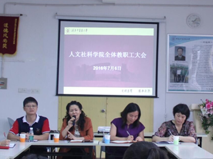 2016年7月6日上午,人文社科学院在学院活动室学期末全体教职工大会。校纪委书记张玉芬出席会议,院长毛新志、党总支书记章小纯、副院长陈小平以及全院所有教职工老师参会。会议由章小纯主持。