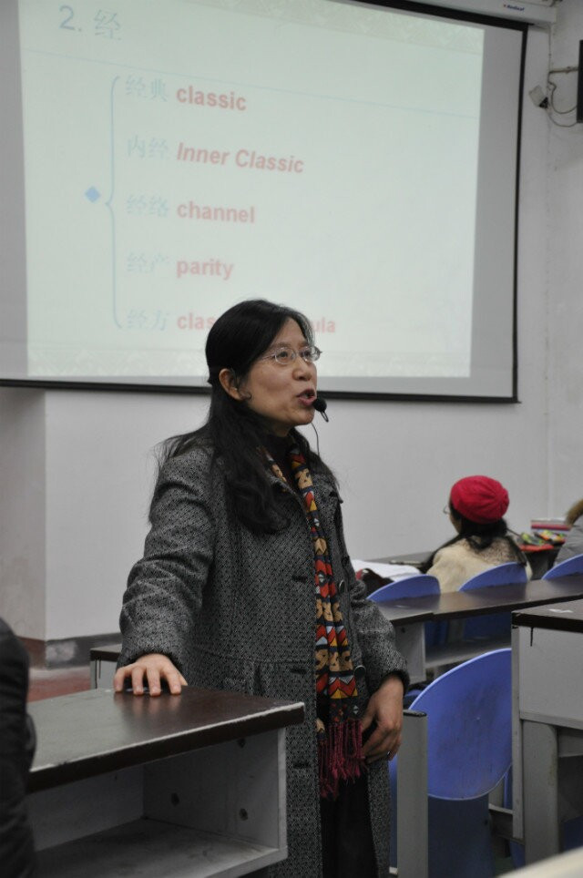 在本次颁奖典礼上,除为获奖同学颁奖以外,医学英语教研室肖平主任还为大家带了一次生动有趣的中医术语汉英翻译小讲座。讲座以相同的中文词语却有不同的翻译为例,指出词语的翻译是译意而不是译词,中医术语的翻译应忠实于原文,让在场的同学收益颇丰。讲座结束后还进行了紧张而有趣的中医术语翻译有奖抢答。