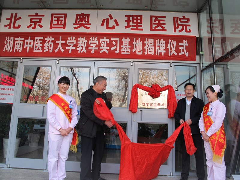 2014年12月22日上午,我院在大学党委副书记、副校长黄政德的带领下,赴北京国奥心理医院举行湖南中医药大学教学实习基地挂牌仪式。一同前往的有学校教务处处长刘平安、人文社科学院副院长叶利军、心理教研室主任谢静涛、实习科科长雷晓明及学生科刘瑞斌、李艳霞老师。