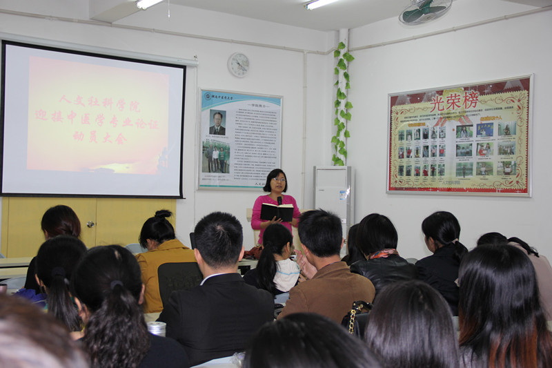 2014年10月29日,人文社科学院在学院学生活动室召开了迎接中医专业认证的动员大会,院长毛新志、副院长叶利军出席会议,全体教师参加。会议由叶利军副院长主持。