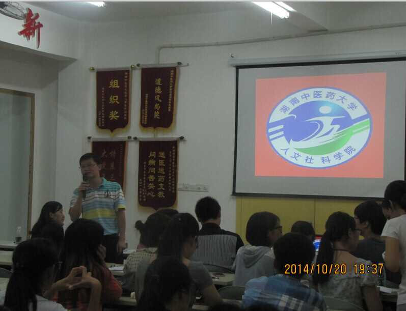 人文社科学院院徽设计大赛的决赛于2014年10月20日晚,在我院学生活动室隆重举行。我院院长毛新志教授,副院长叶利军教授,学生科刘瑞斌老师、李艳霞老师、王迪老师担任本次大赛评委。