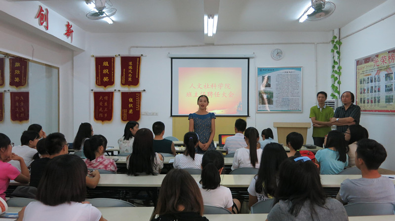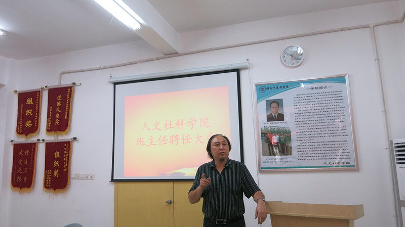新的学年,新的开始。我校为了顺利地开展学生管理工作,促进学生的良好发展,决定继续实行各班班主任制度。我院为了更好地执行此制度,更积极有效地开展学生工作,专门于2014年9月4日中午12:20在我院活动室召开人文社科学院班主任聘任大会。大会由罗华书记主持,肖长根、谢粤湘等老师及学生科各位老师参与此次会议。