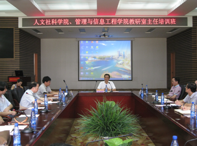 2013年8月26日,由人文社科学院、管理与信息工程学院联合举办的首届教研室主任培训班在大学行政楼一楼会议室胜利召开,大学党委副书记、校长廖端芳,大学党委委员、纪委书记肖小芹,大学党委委员、副校长彭清华,组织人事部部长易刚强,教务处处长刘平安出席,人文社科学院、管理与信息工程学院的领导与各教研室主任、副主任参加培训班。培训班由人文社科学院院长毛新志主持。