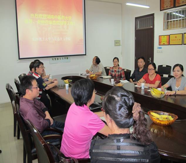 为学习借鉴校院二级管理体制改革经验,推进学科建设,深化教学改革,9月26日下午,人文社科学院副院长叶利军、党委副书记罗华率学院教研室主任及教学科研骨干一行10人,前往长沙理工大学进行调研。