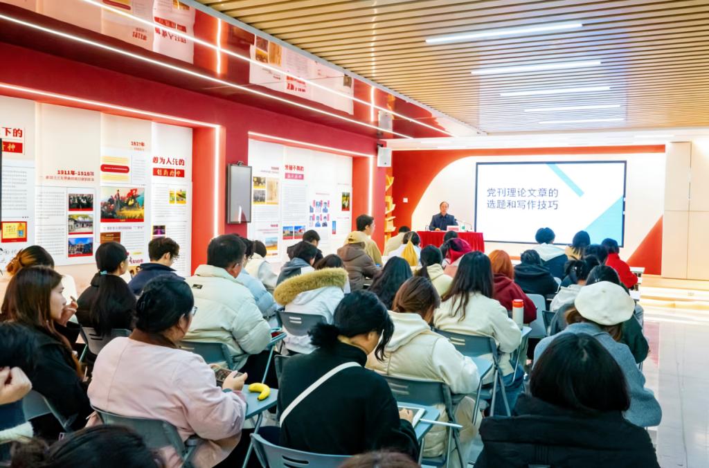 胡德池围绕“站位要高、情况要明、选题要新、说理要透、打磨要精、时机要对”六个维度,系统阐述了党刊理论文章的写作要领,强调理论工作者应自觉提升政治站位。他表示选题须紧扣时代主题,做好理论联系实际的文章,写作须兼具思想性与针对性,注重把握宣传时效。互动环节中,同学们踊跃提问、交流热忱,现场氛围热烈浓厚。
