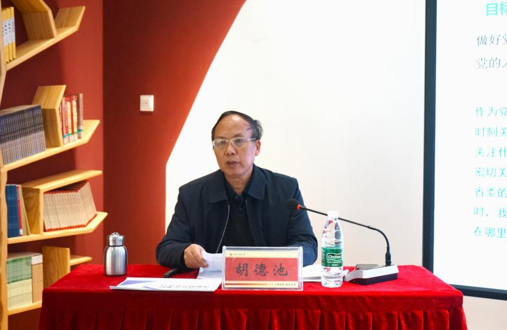 12月3日下午,我院于含浦校区湘红书院成功举办“党刊理论文章的选题与写作技巧”为主题的专题讲座。讲座特邀《新湘评论》杂志社三级编审胡德池主讲,我院党委书记李晖,全体辅导员以及研究生、党团学生干部、思政育人宣讲团成员等40多名同学共同参与。